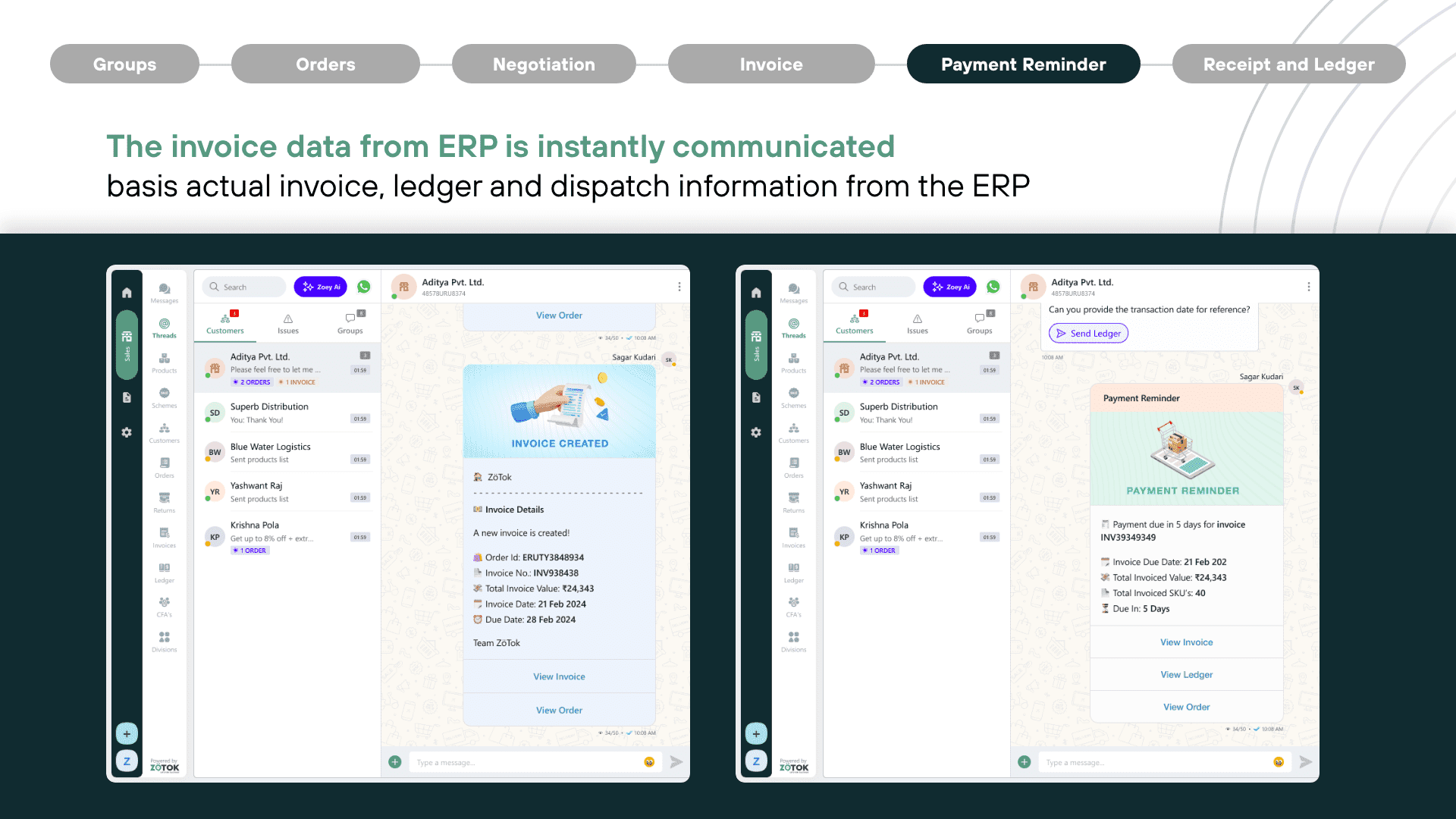 Invoice, Disptach Note, Ledger Sharing on WhatsApp
