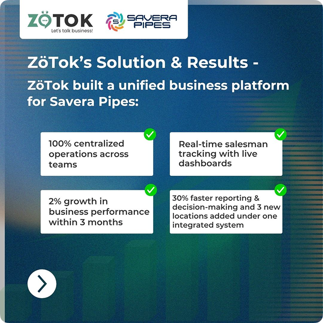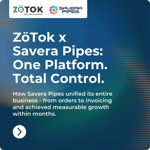 With ZöTok's unified platform, Savera Pipes now manages all operations through a single system.